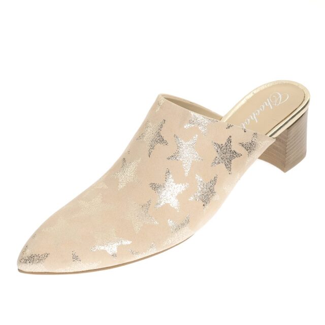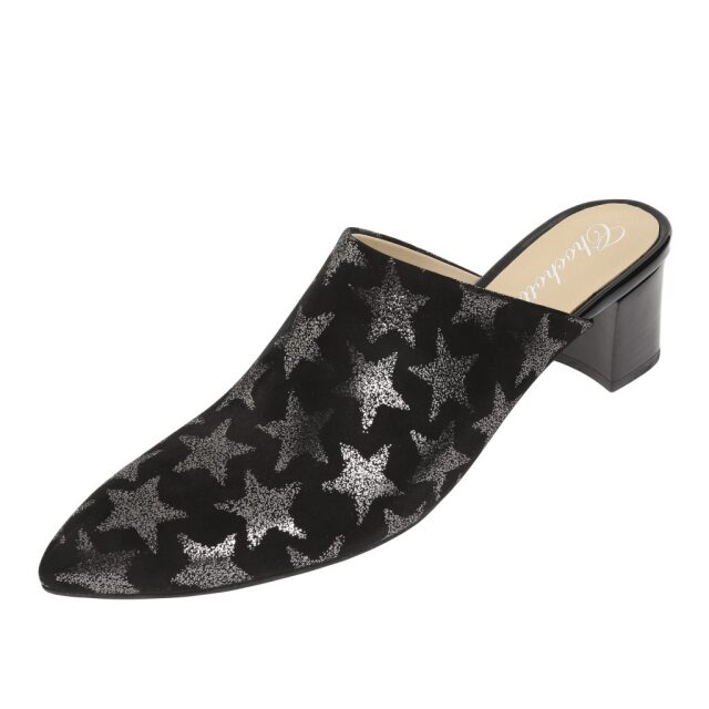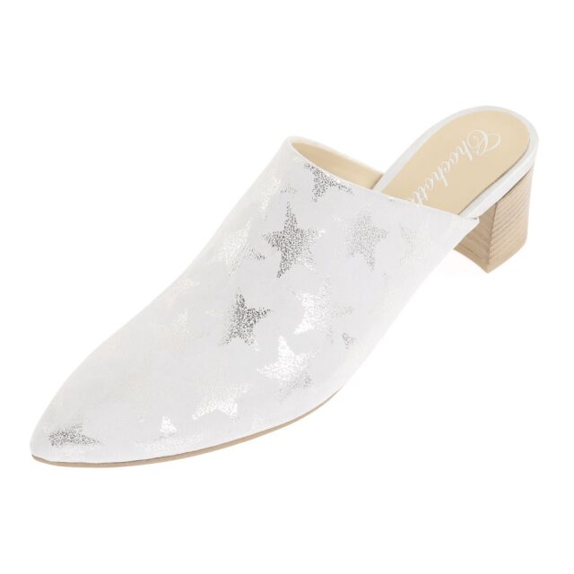 幅狭甲低足向け靴ブランドChochotte PlusのErikaは、5cmチャンキーヒールの幅狭ポインテッドトゥミュール。甲を深く覆い、かかとが左右にずれにくく安定感のある履き心地です。
